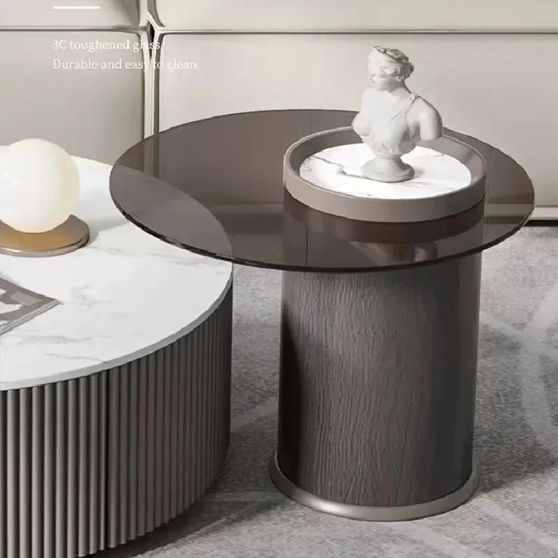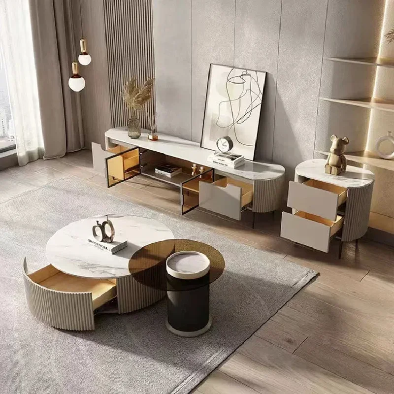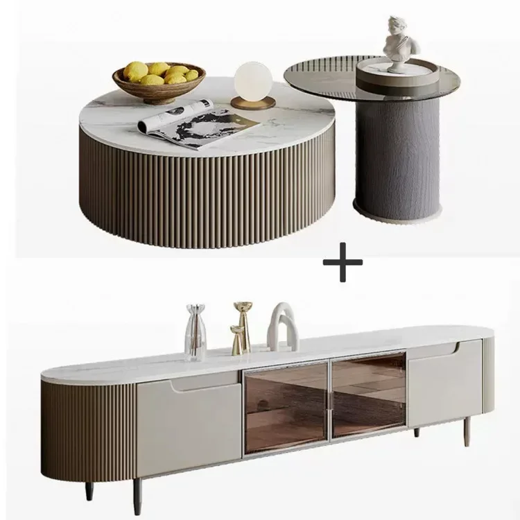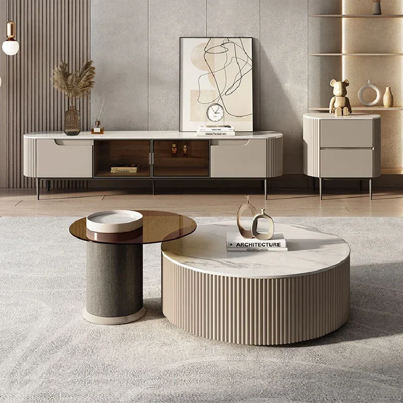 Coffee Table set living room round combination rock panel coffee table living room tempered glass TV cabinet creative furniture